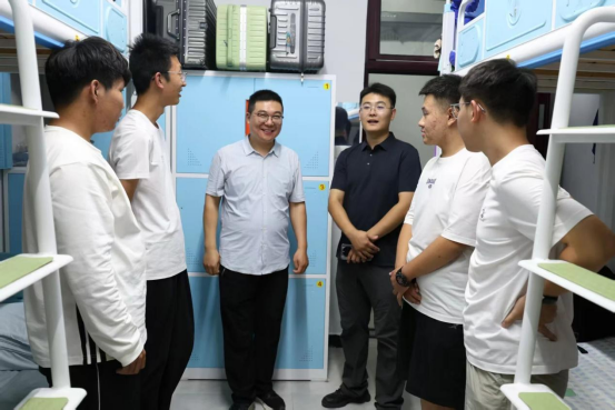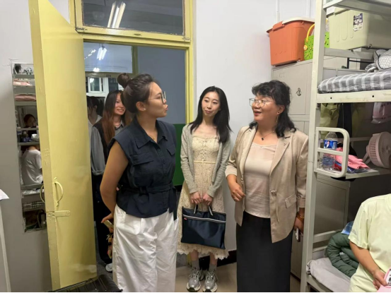 走访过程中,学院老师逐一走访新生宿舍,与同学们亲切交谈。他们细致询问新生们的入住体验、生活适应情况以及学业规划,耐心解答大家关心的问题。同时,认真检查宿舍安全设施,提醒新生注意用电安全、防范电信诈骗,并针对宿舍卫生、物品摆放等提出建议,确保住宿环境整洁安全。新生对学院的关怀表示感动,纷纷畅谈入学感受,现场氛围温暖融洽。