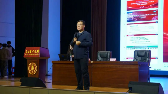 刘鹏就校园文化活动的具体内容进行了介绍,并阐述了其对提升学生综合素质、彰显学院特色文化的重要意义,同时展示前几届软件学院学子斩获的冠军奖项与荣誉成果,有效激发了新生参与校园活动的兴趣与热情。鼓励新生结合自身兴趣爱好,积极参与校园文化活动,在实践中展现才华、锻炼能力。最后,他向新生展示优秀学生代表与学生干部的风貌,鼓励新生以他们为榜样、向优秀看齐,在未来的大学生活中积极进取、锤炼自我。