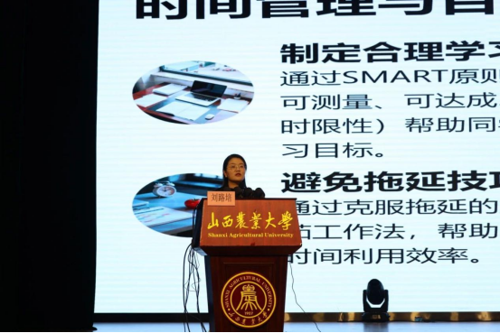 刘路培聚焦大学生心理特点,巧妙运用“半杯水”等生动案例,引导新生客观认知自我心理状态,传授心理健康维护的实用方法。她通过启发式提问,深入解析健康与心理健康的内在联系,紧扣新生适应实际,重点强调学业与生活平衡的策略,助力学生树立科学的心理认知。