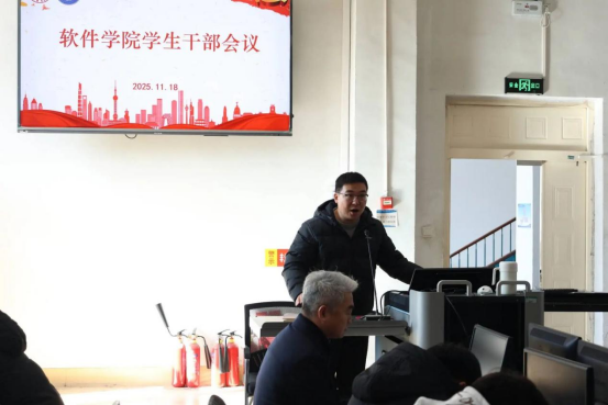 为统筹推进学生工作,确保各项工作规范落地,11月18日,软件学院于崇学楼软件工程实验室(一)举办学生干部会议。学院分团委副书记刘鹏、李文鑫,2025级辅导员刘金璋出席会议,全体学生干部参会。