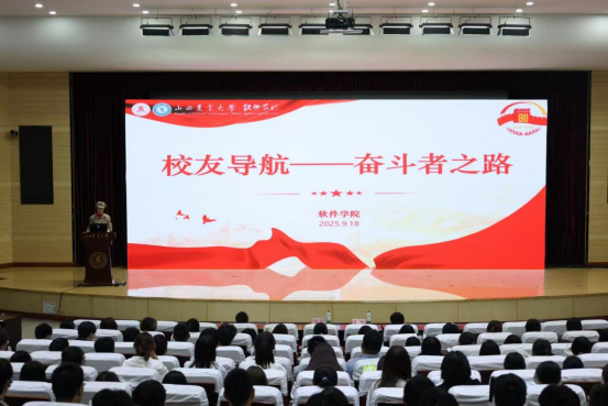 9月18日,软件学院于书林堂举办校友导航——奋斗者之路报告会,特邀2024届优秀毕业生、作为民兵方队一员参加纪念中国人民抗日战争暨世界反法西斯战争胜利80周年大会阅兵的张航担任主讲人,学院党委书记秦刚、党委副书记靳海波出席报告会,部分学生代表参加活动。