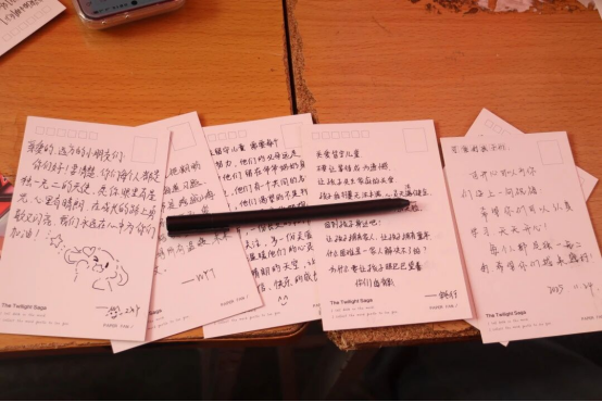 活动现场,志愿者们用心撰写一张张承载着祝福与希望的明信片。明信片上,既有温暖的鼓励话语,也有生动的图画和趣味小知识,字里行间满是真诚与关怀,每一张明信片都凝聚着他们对孩子们的牵挂与祝福。活动结束后,社团工作人员向参与活动的志愿者发放纪念礼品,并将明信片邮寄给山东偏远地区留守儿童,现场气氛温馨而感人。