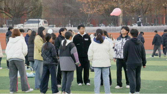 活动全程以趣味游戏为核心主线,开场的破冰互动迅速打破陌生壁垒。同学们卸下拘谨、主动交流,为新奇的互动形式会心欢笑,也为彼此的真诚分享积极回应,热烈融洽的氛围快速拉近了同学之间的距离。“同心协力闯关” 环节亮点纷呈,“顶气球”、“动作接力模仿” 等趣味任务接连上演。现场笑声、加油声交织回荡,热闹非凡。