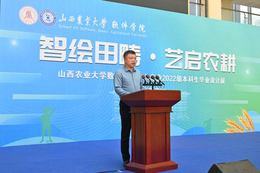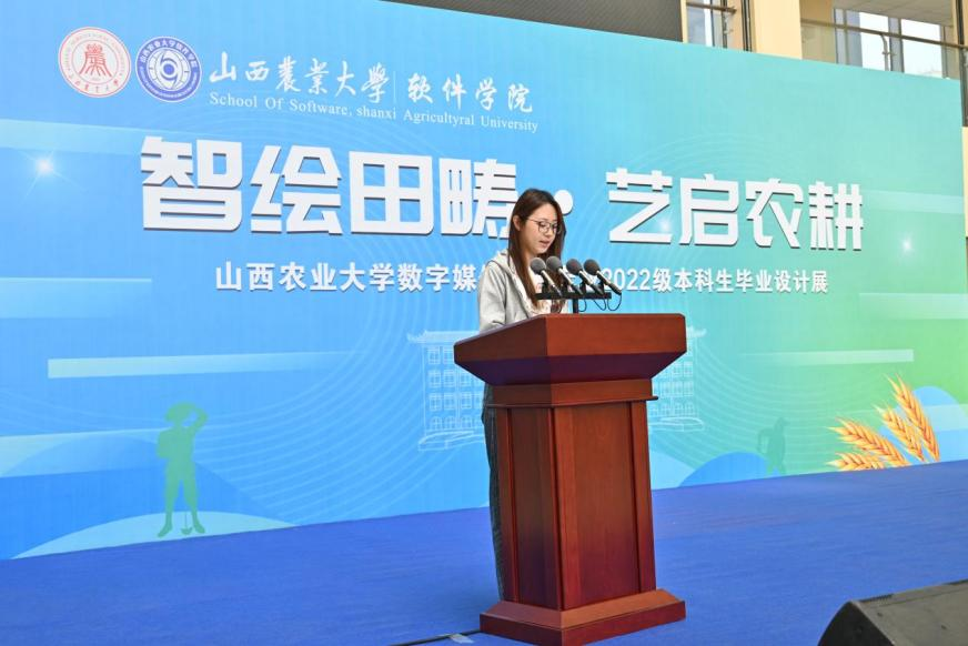 软件学院院长李富忠在开幕式致辞中,充分肯定了同学们将传统文化元素与数字技术深度融合的创新实践,和用技术活化农耕记忆、用艺术讲好乡土故事的专业素养与责任担当。他勉励同学们:一要坚守初心,以艺传情,做有温度、有情怀的创作者;二要勇于创新,以技赋能,紧跟技术前沿,用创意书写时代答卷;三要扎根大地,知行合一,不忘农大底色,在乡村振兴与文化传承中贡献青春智慧。他希望同学们以过硬本领适应行业发展需求,用专业服务社会,用创意点亮未来。
