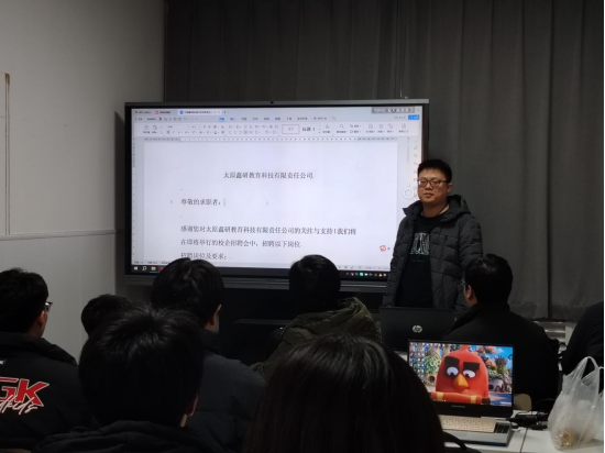 2026年1月16日上午,太原鑫研教育科技有限责任公司专场招聘宣讲会在山西农业大学软件学院成功举行。作为一家专注于教育科技产品研发与服务的本土创新企业,鑫研科技此次携众多技术核心岗位走进校园,与软件学院的学子们深入交流,共同探讨科技如何赋能教育,吸引了大量对教育信息化和软件开发充满热情的同学积极参与。